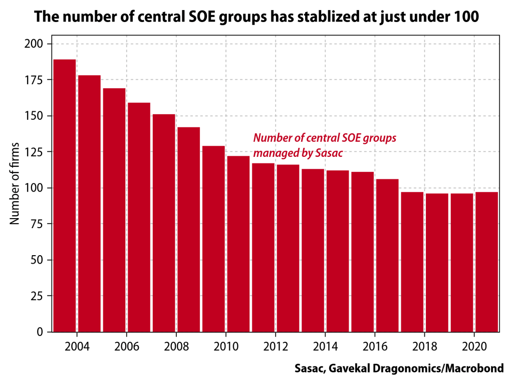 When Zhu Rongji left the post of premier in 2003, he foresaw the number of central government-owned SOEs shrinking in five years from around 180 firms to around 15, all operating in national security areas like telecoms and energy.